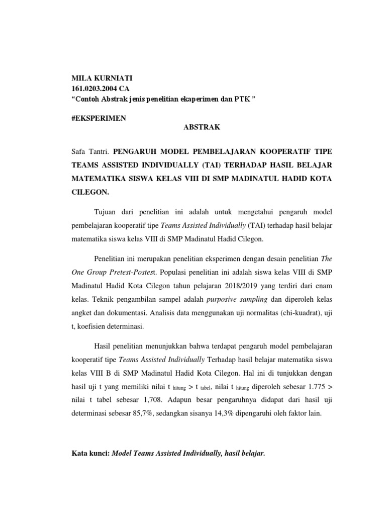 Sementara metode eksperimen dilakukan dengan mengambil sampel air. Anda perlu langsung action untuk menjalankan riset baik itu berupa eksperimen pengumpulan data maupun observasi dari sumber-sumber referensi tertentu. Contoh Abstrak Jurnal Bahasa Indonesia 2.